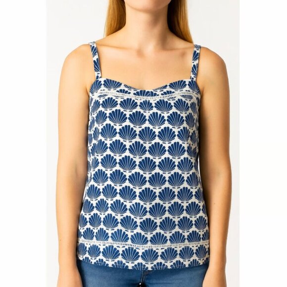 Kate Spade Blue Shell Print Sleeveless Cotton Tank Top Women’s Size L