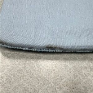 Stylish pouch with blue beads and green lettering. Perfect for parties.