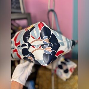 Kate Spade Blue and Red Geometric flower Tote Bag SET
