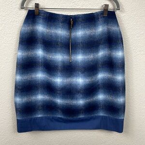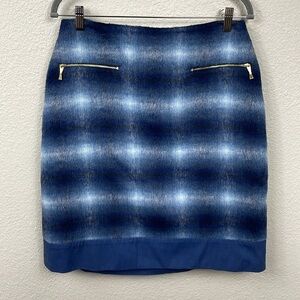 Kate Spade Blur Plaid Soft Wool Blend Zip Pocket Skirt Blue Straight Pencil