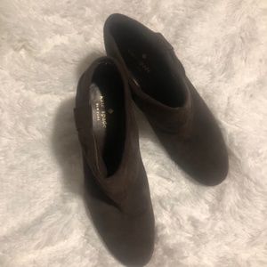 Kate Spade Chocolate Brown Suede Bootie with a decorative rouched cuff, Size: 6M, NOTE: there is a slight wear on left heel as seen in last photo.