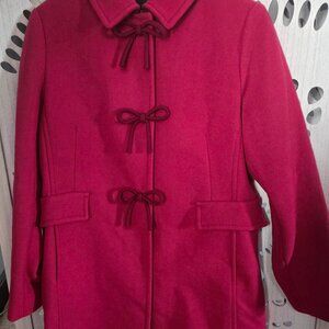 Kate Spade Bow Detail Wool Coat - Raspberry - L - NWOT