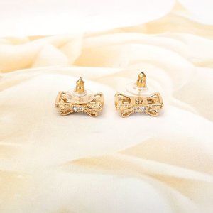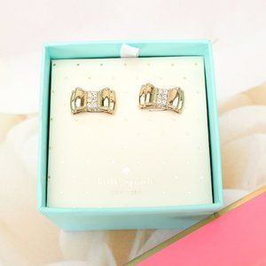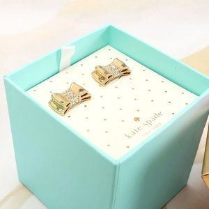 Kate Spade Bow Rhinestone Stud Earrings Gold Tone Fashion Jewelry W/Box
