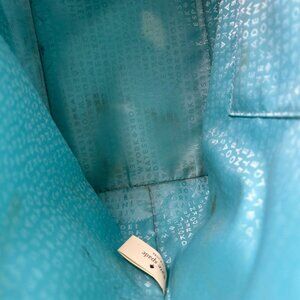 In overall great gently used condition, some staining on the interior lining, some smudging on the bottom
