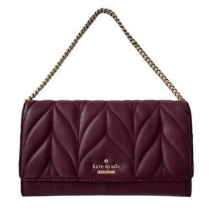 Kate Spade Briar Lane Quilted Milou Wristlet Clutch Deep Plum Purple Gold Chain