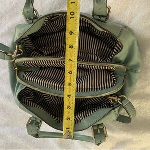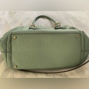Designer bag, sky blue, pale blue, black and white striped lining, carry on, personal item, shoulder bag, Kate spade, soft leather, carryall, satchel, elbow bag, Brighton