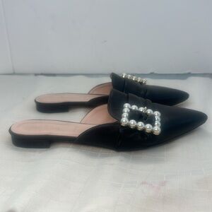 Kate Spade Broadway Black Leather Pearl Buckle Pointed Toe Slides/Mules size 9.5
