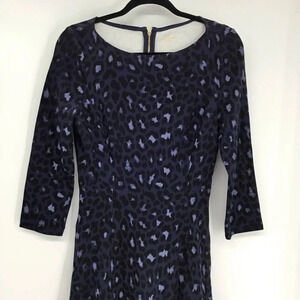 Kate Spade Brooke Street Blue/Black Leopard Ponte Dress 3/4 Sleeve Size 6