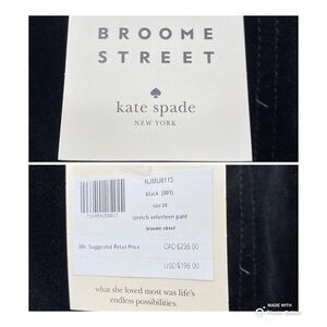 Kate Spade Broome Street Black Stretch Velvet Pant Size 28