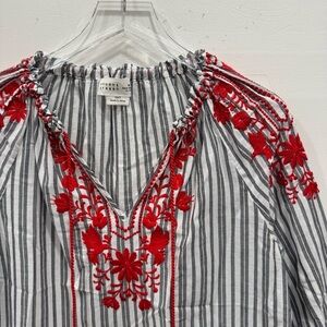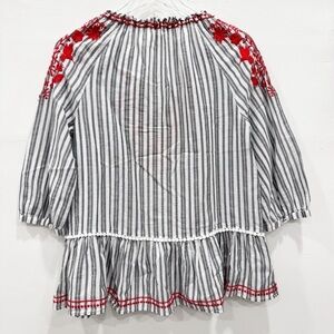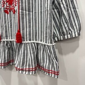 Kate Spade Broome Street Embroidered Stripe Peplum Blouse Tassle Red Grey Small