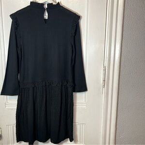 Kate Spade Broome Street mixed media shift dress size large. Multicolor embroidered floral front. Sleeves 3/4 length. Ruffle detail around neck, front, shoulders, waist. Swiss dot skirt (small hole in front, hard to see, lining underneath, see picture). Keyhole back with button closure. Full skirt lining. Nice, gently used condition. Great addition to any closet!