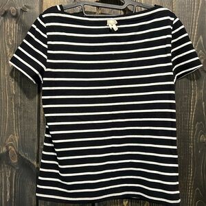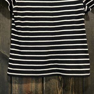Broome Street by Kate Spade Essential Tee. Size medium. Black & white stripe. Now detail on back. Material tag has been cut out but this top is 100% cotton. Preloved. Please see all photos for condition. Slightly cropped length. Classic style.
