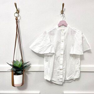 Kate Spade Broome Street White Poplin Flutter Sleeve Top Size XS