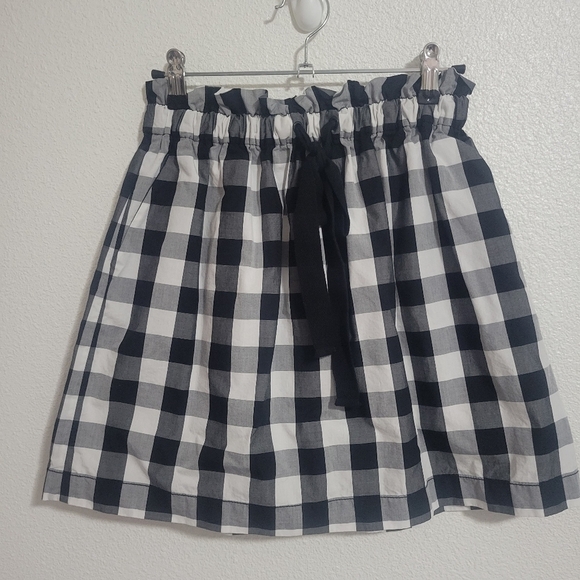 Kate Spade Broome Street checkered mini skirt size xs see pics for verification of size gently used no holes or stains or pilling measurements approximately flat lay waist 12 1/2 length 17