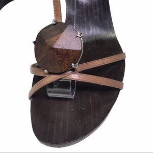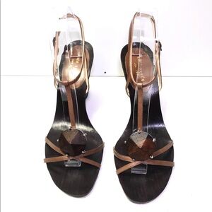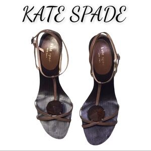 Kate Spade Brown Leather Open Toe Buckle Wedge Heel Sandals Size 8