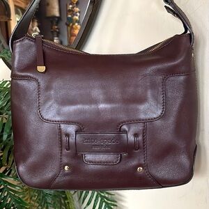 Kate Spade Brown Leather Shoulder Bag Vintage Zippered Purse Gold Tone Accents
