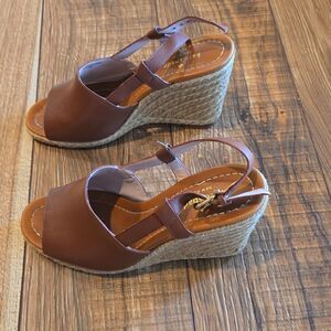 Kate Spade Brown Leather Wedge Sandals. Chic brown leather wedges with an adjustable ankle strap. Ideal for versatile wear. Reposhing. Wore them once and fit is just a little off for me.