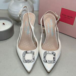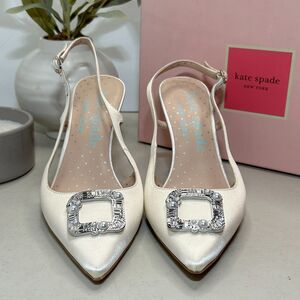 Kate Spade Buckle Up Sling Heels Slingback Ivory Bridal K7090 Women's US 9.5 B