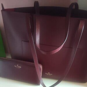 Elegant burgundy tote with matching wallet. Sleek design. Perfect for everyday use.