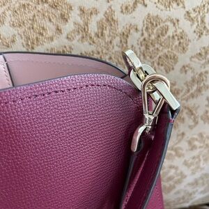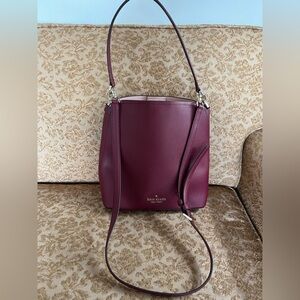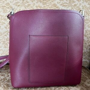 It measures about 10x10x4 and has a crossbody strap as well as a handle.