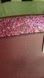 Elegant burgundy satchel with pink glitter accent. Features gold charm details. Perfect for any occasion.