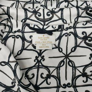 Kate Spade Button-Front Pajama Top M White Black Scroll Print in great condition!