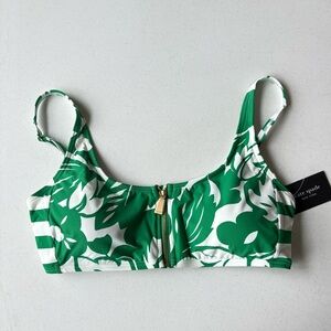 Kate Spade Cabana Mix Zip-front Bikini Top LARGE NWT