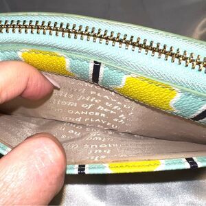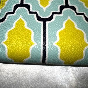 Kate Spade Cabana Tile Lacey zip around wallet with a bold geometric design. Features vibrant yellow and blue hues. Only callouts are some glue marks as shown in pics