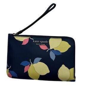 Kate Spade Cameron Lemon Zest Medium L-zip Wristlet PVC Print Blue Yellow Spring summer