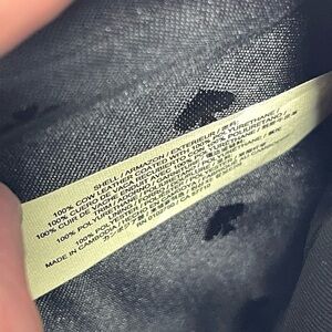 Missing the top zipper pull/wristlet strap and there is a tiny little wear on trim from the back side - see last few photos for details.