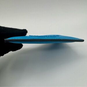 Elegant card holder in vibrant blue. Features multiple slots for cards. Embossed Kate Spade logo.