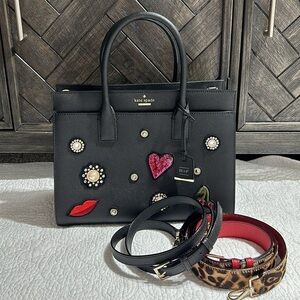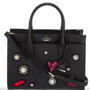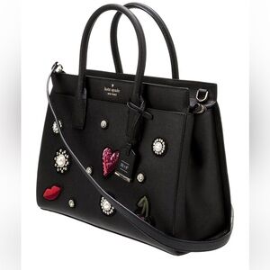 First photo is for modeling purposes only an d does NOT reflect the item for sale. Kate Spade New York Top Handle Bag • Black • Floral Print • Gold-Tone Hardware • Rolled Handles & Single Adjustable Shoulder Strap • Embroidered, Sequin, Studded & Crystal Accents • Single Exterior Pocket • Jacquard Lining & Three Interior Pockets • Zip Closure at Top • Protective Feet at Base • Includes Dust Bag & Additional tra measurements Handle Drop: 4.25" Height: 10.25" Width: 13.25" Depth: 6.25" Shoulder Strap Length: 42" Shoulder Strap Drop Min: 18.25" Shoulder Strap Drop Max: 21" All measurements are approximate. Measurements taken laying flat. Refer to photos and descriptions, and please do not hesitate to ask questions All items come from a smoke-free, pet-free environment. Same/next day shipping. Any question? Leave me a comment!! Bundle with other items in my closet up to 5 pounds for one shipping fee! Thanks and Happy purchase!! New to Poshmark? Sign up for a new account using my code https://posh.mk/4xpCEPVfDMb & receive $10 towards your 1st purchase