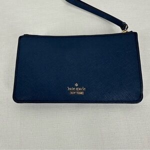 Kate Spade Cameron Street Karolina Blue Leather Wristlet Clutch in good preowned condition light wear to body & lining clear plastic ID part