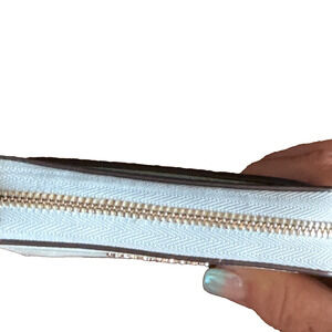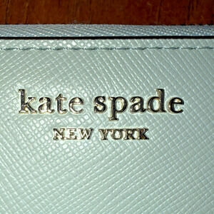 Chic and compact Kate Spade Cameron Street Lainie wallet in beautiful Misty Mint. Made from durable Saffiano leather, this zip-around wallet is perfect for your essentials. Features card slots, coin pocket, and billfold. Ideal for smaller bags or quick errands. Excellent pre-owned condition with minimal signs of use. #KateSpade #Wallet #CameronStreet #Lainie #MistyMint #SaffianoLeather #ZipAround #Designer #Accessory #Luxury