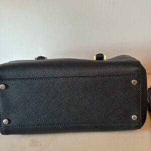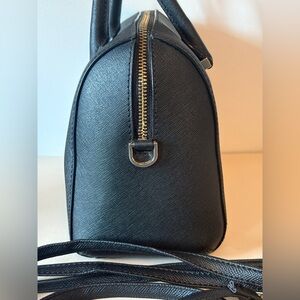 It has a zip closure, interior pockets, and a detachable crossbody strap, making it both stylish and practical.