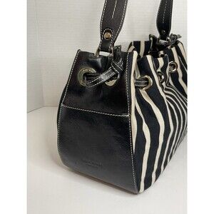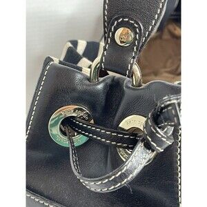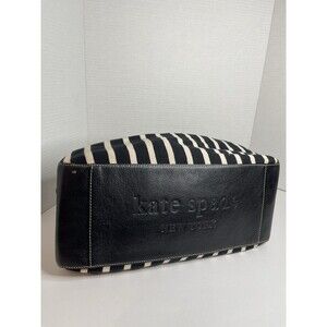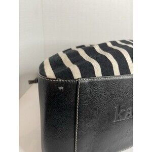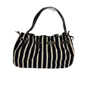 Kate Spade Canvas Leather Striped Black White Shoulder Purse Bag Gold Detail