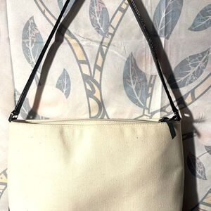 Kate Spade Canvas & Patent Leather Shoulder Bag in excellent used condtion. There are no rips, stains or odors. All zippers work. No wear on strap I cant find any call outs on this bag!
