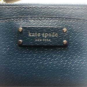 Kate Spade Card Case with zip pocket. Gently used, no signs of wear. Navy blue leather in excellent condition, clean and free of flaws in and out. Light gold hardware, zipper works perfectly