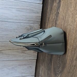 With dimensions of 9.4" in height, 11.4" in width, and 4.9" in depth, this bag offers ample space for all your essentials. While missing the crossbody strap, the 4" handle drop adds versatility, allowing you to carry it comfortably by hand or wear it as a chic crossbody. Please note, there is a slight stain on the interior and a misshapen corner on the exterior.
