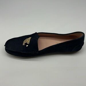 Kate Spade - Carmen Navy Suede Gold Logo Round Toe Driving Loafer Size 8