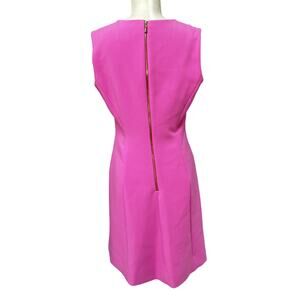 Kate Spade Crepe A-line Dress In Carousel Pink. A-line silhouette. V-neckline. Sleeveless. Exposed center gold tone back zip closure. Straight hem. Dry Clean.