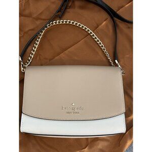 Kate Spade Carson Saffiano Leather Convertible Crossbody Warm Beige Black NWOT
