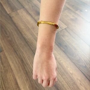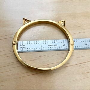 Chic gold bangle with cat ear design. Perfect for adding a playful touch to any outfit. Hidden hinge closure.