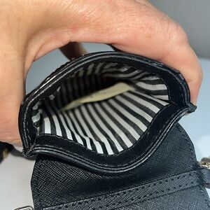 This is a great rate Kate Spade Kitty Cat Limited Edition Crossbody Bag Phone Case Fits an IPhone. Crosshatch leather bag. Three credit card slots. Fully lined interior. Magnetic snap closure. Pink suede ears show a little normal darkening. Pink crystal is intact as are the goldtone whiskers. 6.75” x 3.75 x 1 with a 23.5” strap drop. No odors. No tears.
