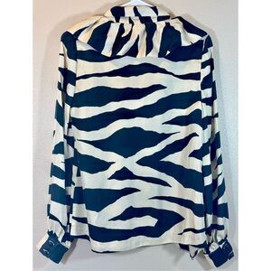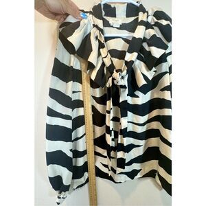 Kate Spade Catarina Zebra Print 100% Silk Ruffle Collar Tie Blouse Women's M
