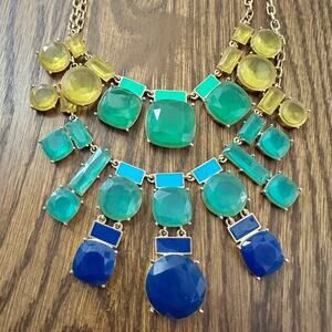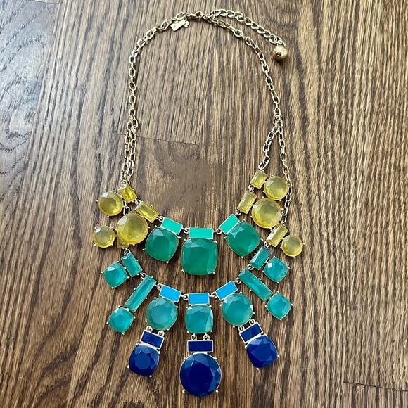 Kate Spade Cause A Stir blue green and yellow statement necklace