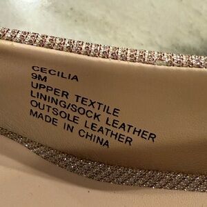 Kate Spade “Cecilia” heels in size 9M. Iridescent fabric shifting from pink to gold. Open toe with bow.