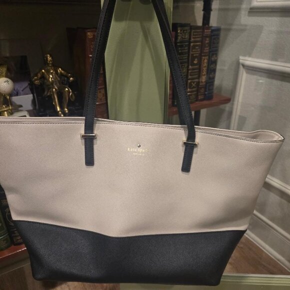 Kate Spade Cedar Street Harmony Two-Tone Beige & Black Leather Shoulder Bag