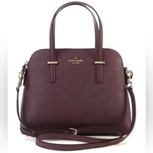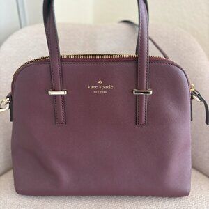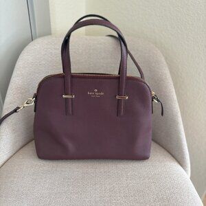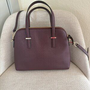 Gently used with very minor signs of wear. Beautiful dark aubergine (eggplant) color. Genuine saffiano leather. 100% authentic, purchased directly from Kate Spade for $230.
