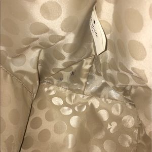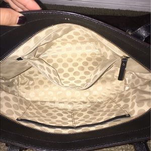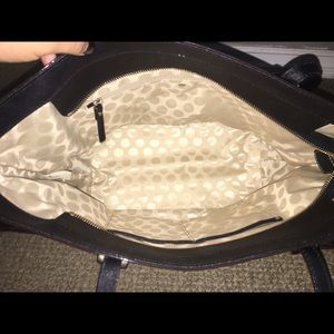 Zipped tote bag. Hardly used. Excellent condition. Stored in dust bag. No interior rips. Small pen marks inside of bag (see photo).